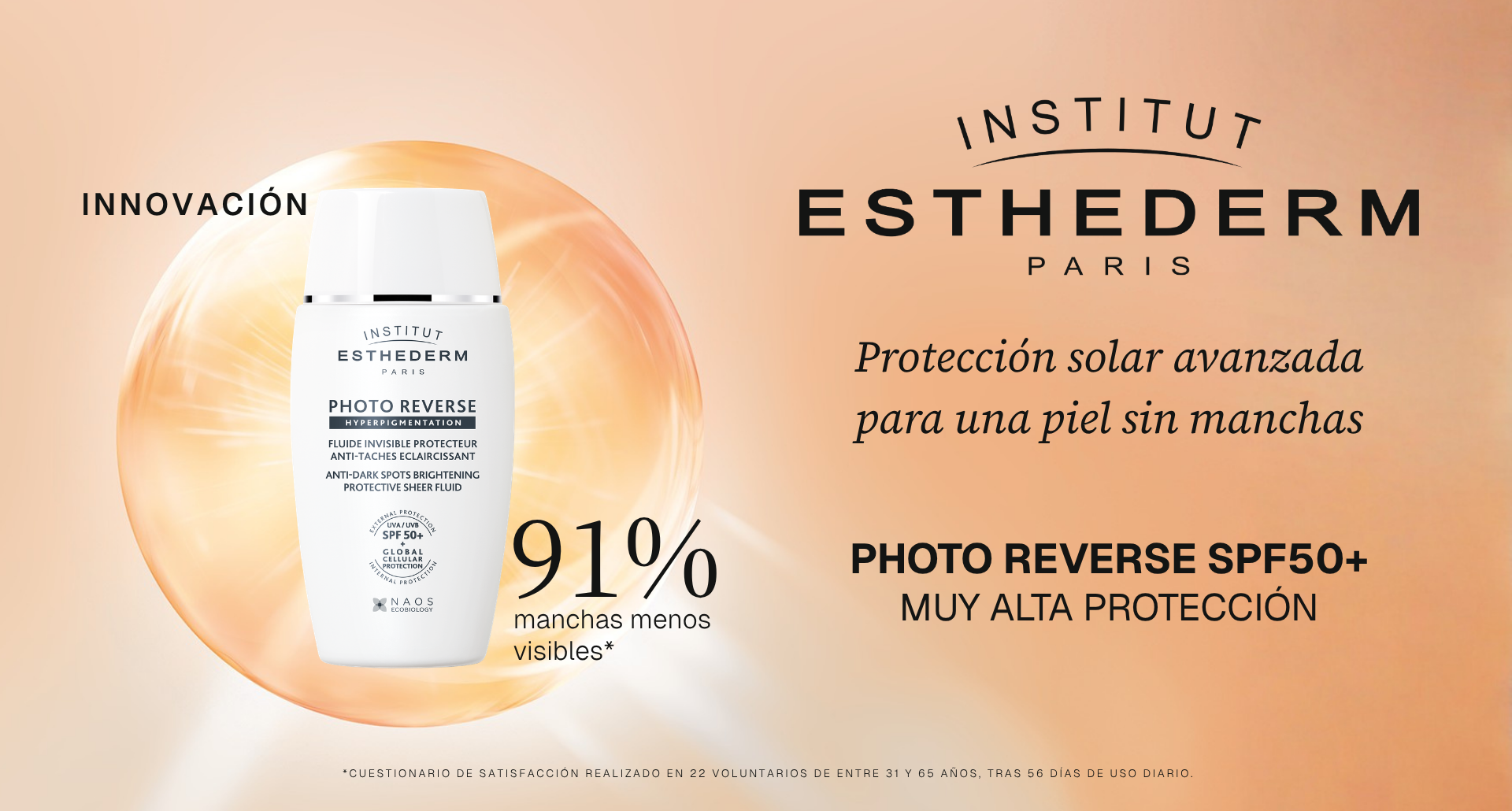La crema solar Photo Reverse tiene una patente tecnológica única que limita y reduce el proceso biológico de hiperpigmentación de la piel. Ahora puedes disfrutar del sol sin preocuparte por las manchas o el envejecimiento de la piel.