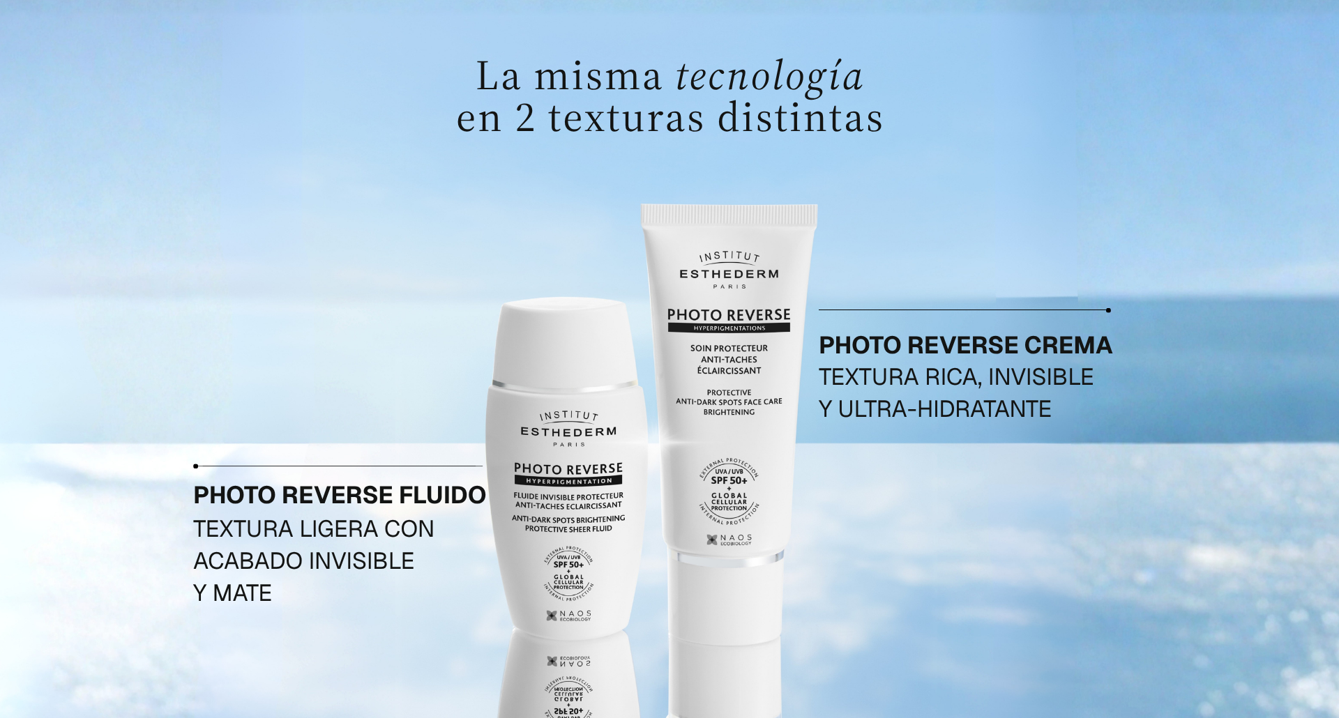 Photo Reverse limita la pigmentación de las manchas existentes y previene la aparición de nuevas, al tiempo que favorece la luminosidad del tono de la piel, incluso durante la exposición solar. Su patente tecnológica está disponible en una gama completa de solares faciales.